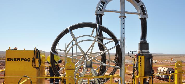 VDM 集團(tuán)在建設(shè)澳大利亞最大的磁鐵礦開(kāi)采和加工地點(diǎn)中采用一套Enerpac 鋼索提升系統(tǒng),該系統(tǒng)能夠安全地定位大型負(fù)載,精確度在毫米以內(nèi)。