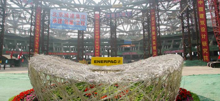 在大多數(shù)西方國家,都會(huì)雇用起重機(jī)來完成吊裝工作,用焊機(jī)切斷施工時(shí)鋪設(shè)的78個(gè)支柱上的焊縫。然而,由于雇用大量的800噸起重機(jī)費(fèi)用極其昂貴,這就需要找到一種更精明且更經(jīng)濟(jì)的解決方案。整個(gè)切割作業(yè)中首要的是安全、控制、穩(wěn)定和成本問題。于是他們求助于Enerpac公司,Enerpac因其為全世界以及中國很多大型工程提供復(fù)雜的液壓應(yīng)用而聞名,其中在中國最為著名的是他們參與的南通體育館開閉合屋蓋項(xiàng)目以及百年建筑物上海音樂廳的平移項(xiàng)目。