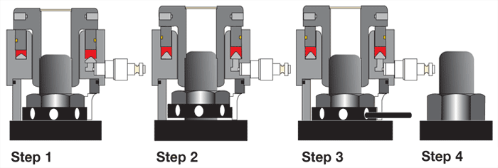 Tensioning permits the simultaneous tightening of multiple bolts; the tools are connected in sequence via a high-pressure hose assembly to a single pump unit. This ensures each tool develops the exact same load and provides a uniform clamping force across the joint. This is especially important for pressure containing vessels requiring even gasket compression to affect a seal.